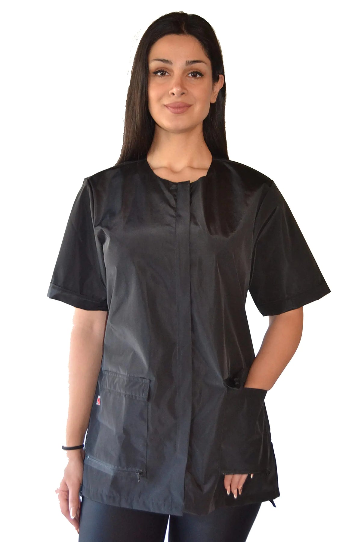 👕 Functional Fashion: Fashion meets function in these chic black smocks with a breathable mesh back, offering both comfort and a professional look.